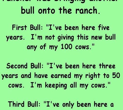 ? First Bull: “I’ve been here five years. I’m not giving this new guy a single one of my 100 cows!”
