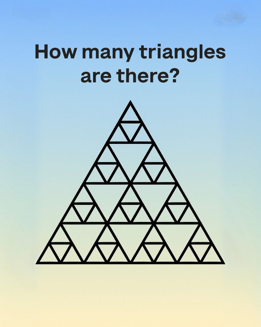 This triangle puzzle is the perfect example of how our brains often underestimate complexity. It teaches us an important lesson: things aren’t always what they seem. You can’t just glance and guess — you need to analyze, observe patterns, and think critically.