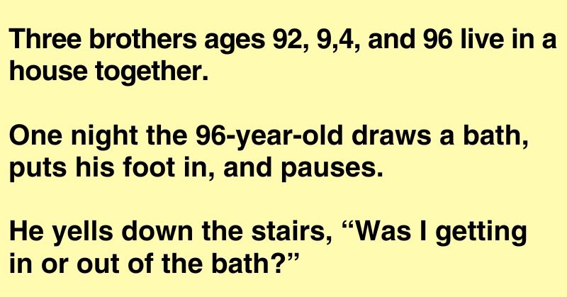 He yells down the stairs, “Was I getting in or out of the bath?”
