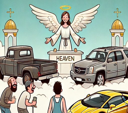 “Dude, what’s wrong? You made it to Heaven in a Lambo!”