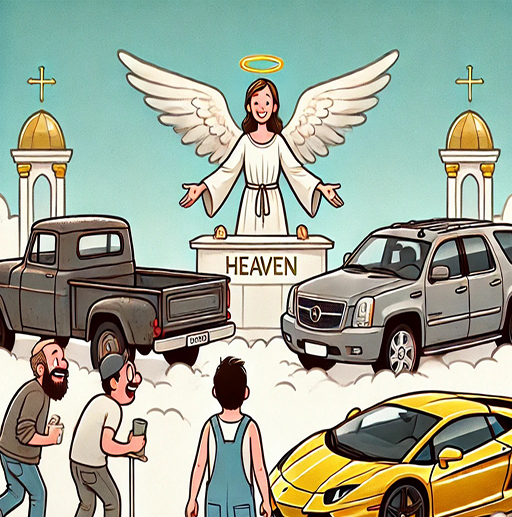“Dude, what’s wrong? You made it to Heaven in a Lambo!”