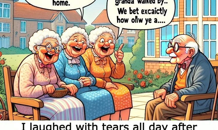 Three cheeky old grannies were sitting on a bench outside the nursing home when an old grandpa strolled by. One of the grannies, always up for a challenge, yelled out, “We bet we can guess how old you are!”