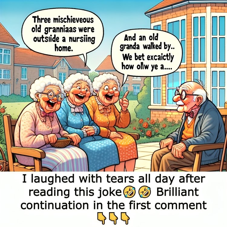Three cheeky old grannies were sitting on a bench outside the nursing home when an old grandpa strolled by. One of the grannies, always up for a challenge, yelled out, “We bet we can guess how old you are!”