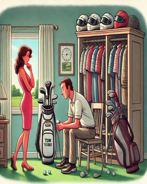 One evening, not long after their honeymoon, he was busy organizing his golf equipment.