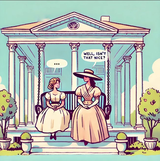 Two Southern belles—one from Mississippi, the other from Texas—sat rocking on the porch of a grand white-columned mansion.