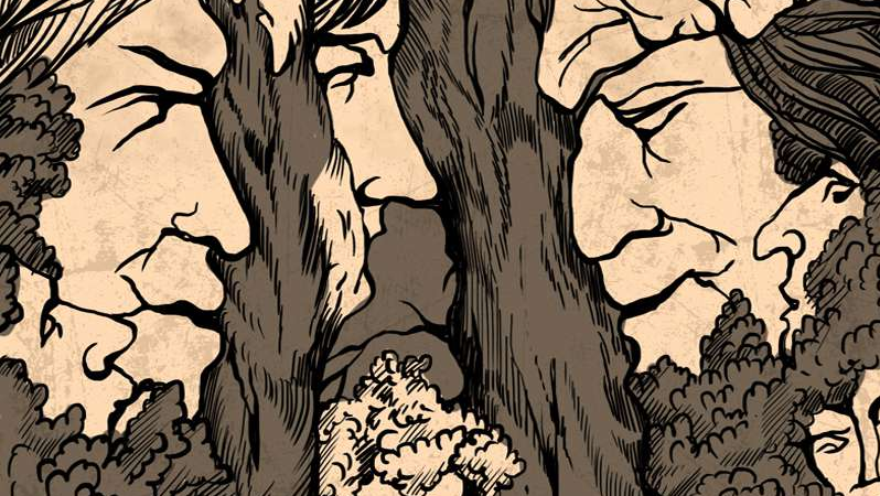 The branches are intertwined in such a way that they hide several human faces. Can you spot them all before time runs out?