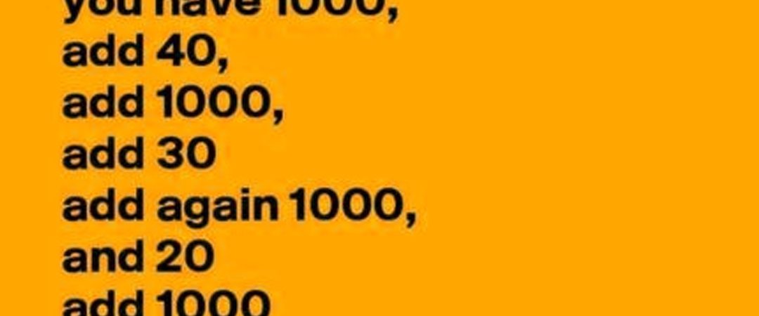 Here’s a task: Start with 1000, then add 40, 1000, 30, 1000, 20, another 1000, and finally 10. Seems simple, right? But many people make a quick mistake and say the total is 5000. Why is that?