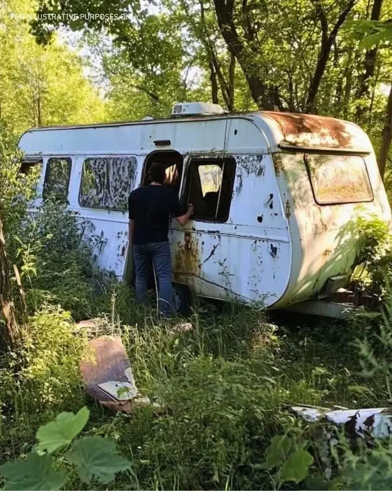 And there it was—a rusted old trailer, partially concealed among the trees.