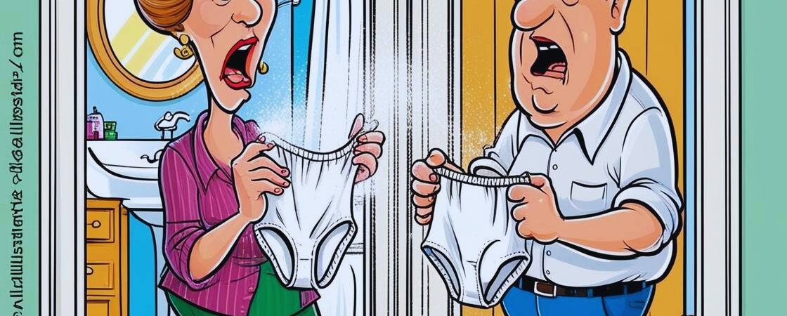 The next morning, as the husband reached into his drawer for a fresh pair of underwear, a mysterious puff of powder burst into the air.