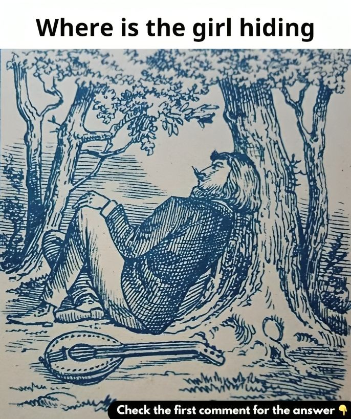 Ready for a brain-bending challenge? This optical illusion features a peaceful scene with a man sitting under a tree, a lute by his side. But hidden within this tranquil image is the face of a girl. Can you spot her?