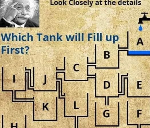 And here’s the final twist: because tank H is blocked, bucket F will be the first to fill up!