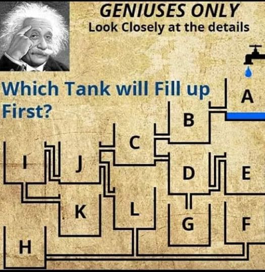 And here’s the final twist: because tank H is blocked, bucket F will be the first to fill up!