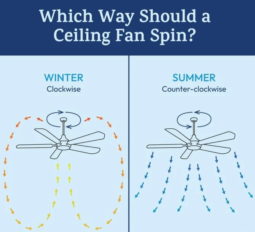 In winter, your goal is to circulate warm air without feeling a draft. As we all know, warm air rises, so if your fan is still set to summer mode, it’s just pushing the cool air down. During the winter months, set your fan to spin clockwise. This will draw cooler air up and push the warmer air from the ceiling down toward the living area. That way, you’re not wasting all the warm air trapped near the ceiling, and your whole room stays more evenly heated.