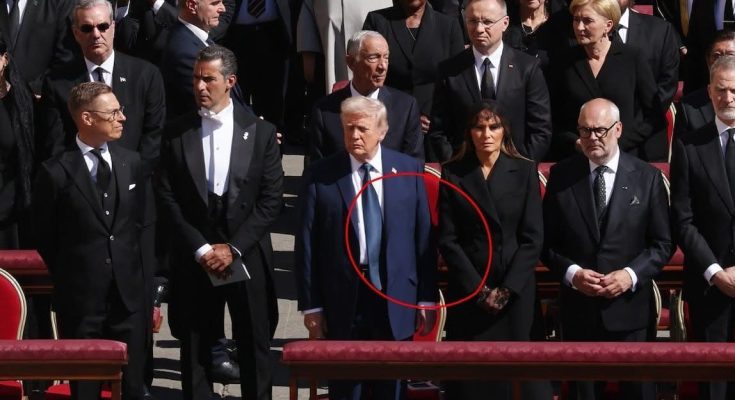 The Vatican’s dress code for papal funerals requires men to wear a dark suit with a black tie, but Trump wore a white shirt, a blue suit, and a light blue tie, breaking the protocol.